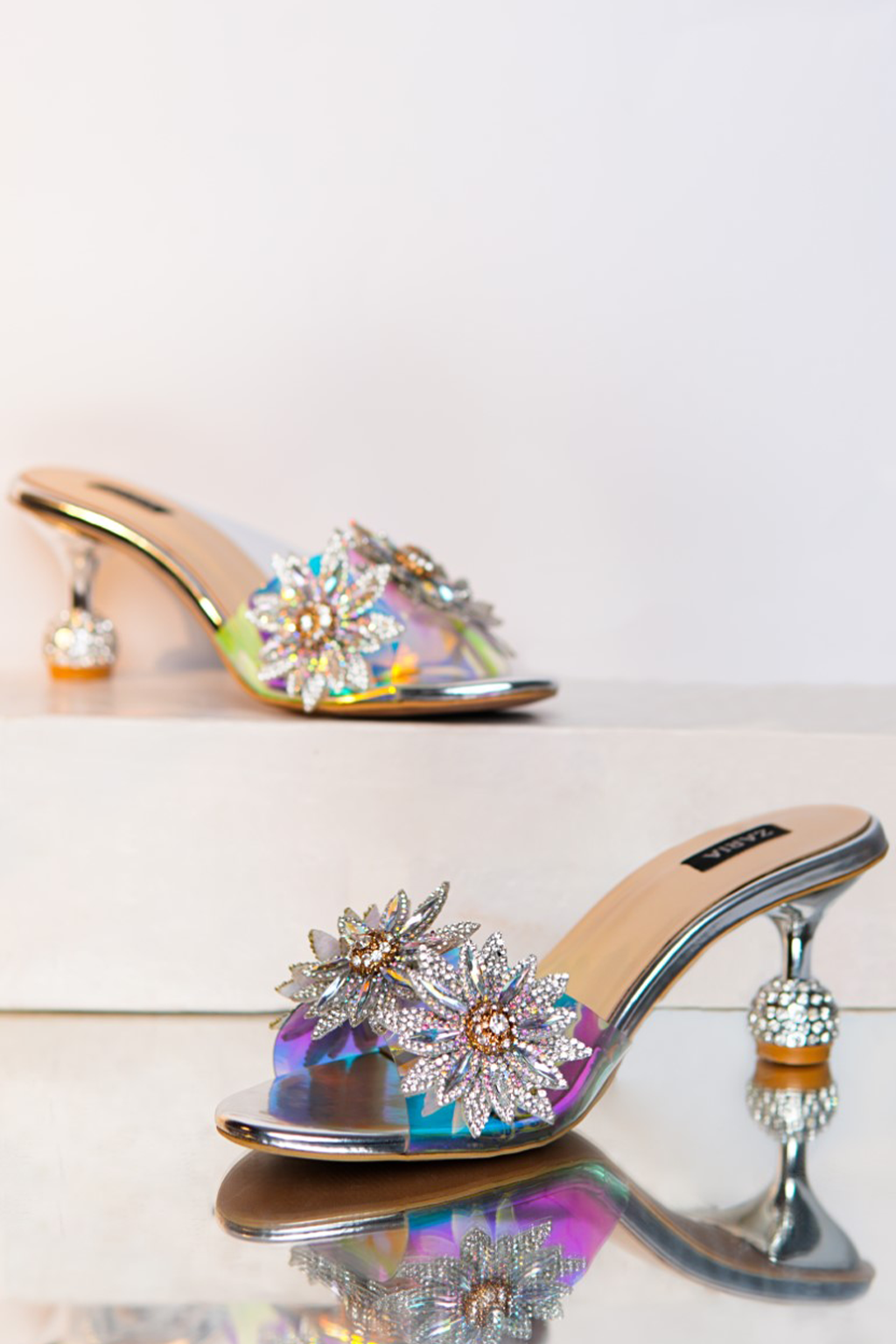 These beauties feature holographic straps adorned with dazzling floral embellishments, combining elegance and sparkle effortlessly. Perfect for evening soirées, weddings, or whenever you want to shine bright like a star! 🌟