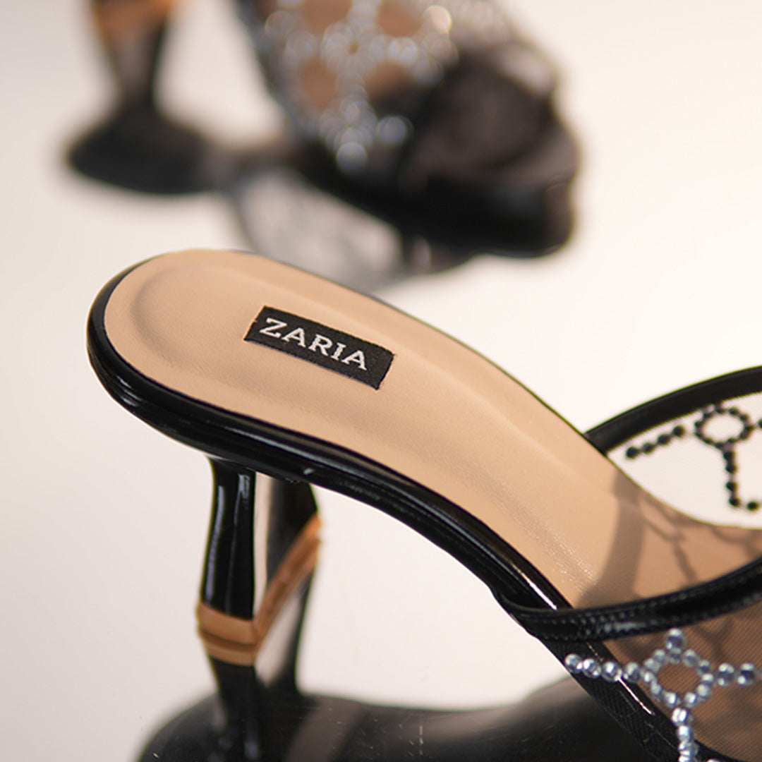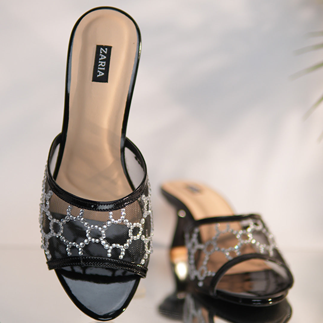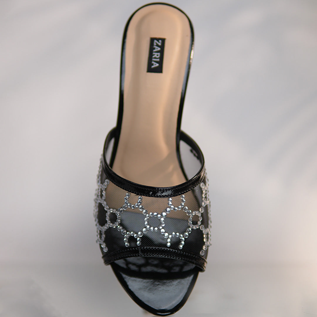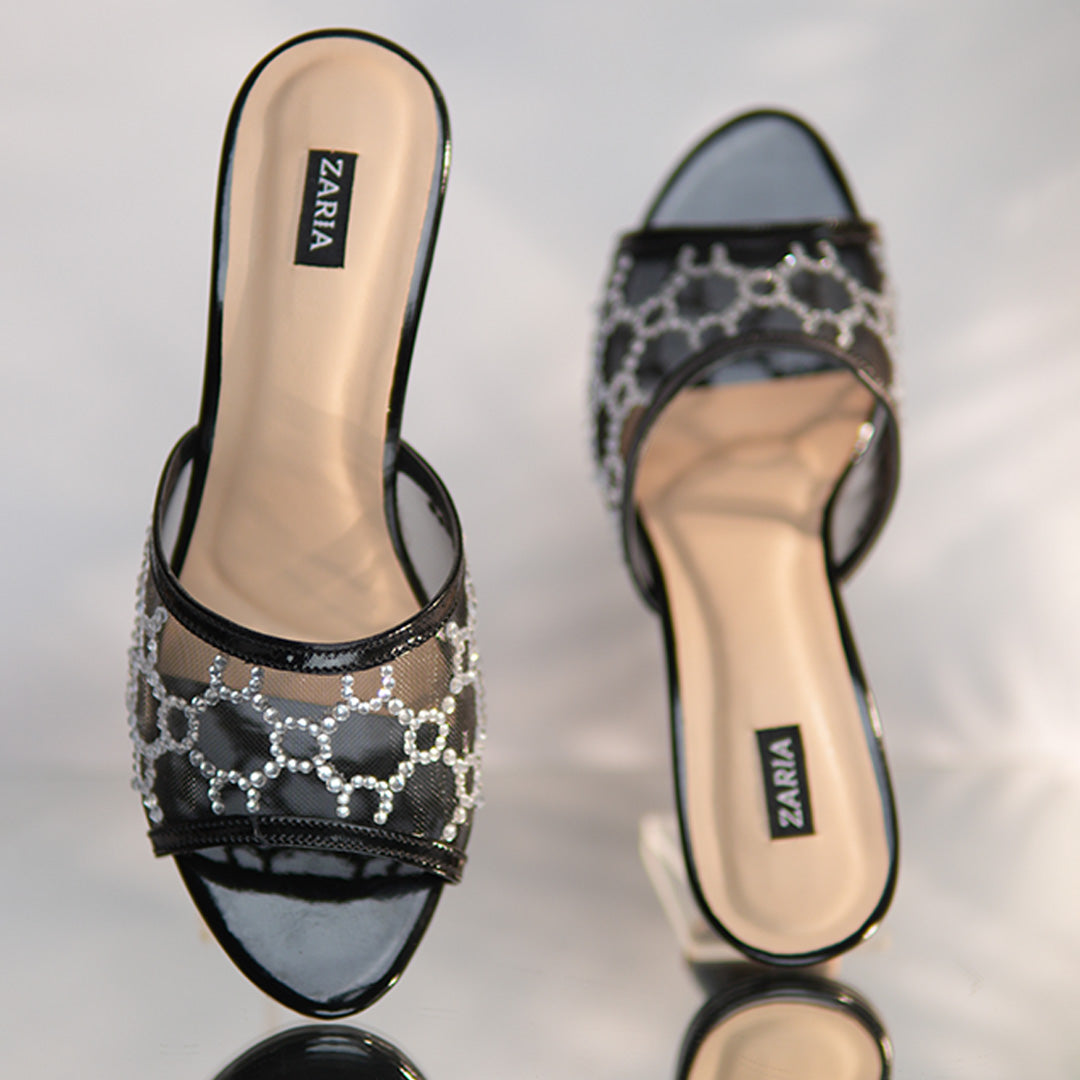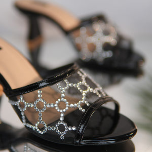 These stunning heels feature a sleek transparent mesh design, adorned with  sparkling rhinestones for a touch of glamour. Perfect for any occasion, they add the right blend of grace and charm to your look.